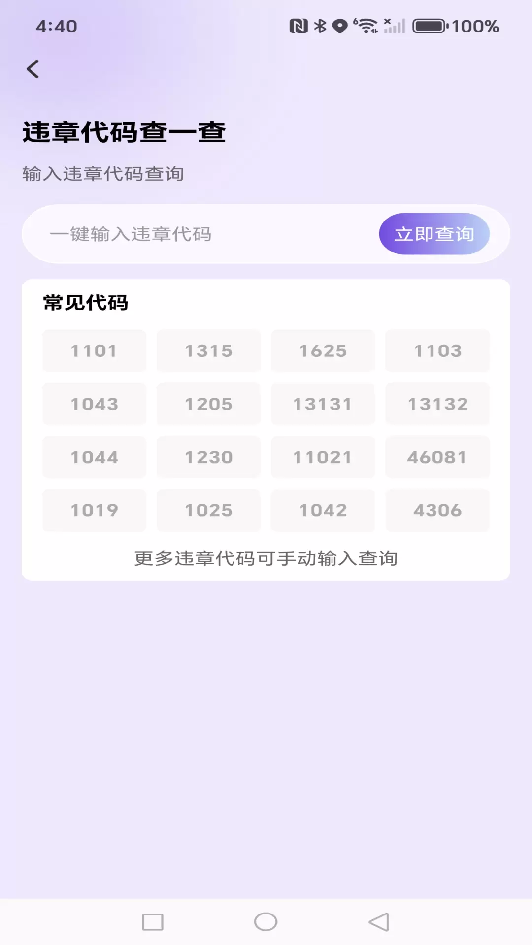 3、 集成全面的交通违法代码库,提供违法行为描述、法律依据、记分分值及罚款金额的清晰说明,辅助车主知法守法。