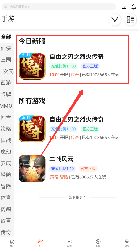 2、在“全部游戏”或分类标签里,根据你喜欢的类型筛选,比如选择“传奇”、“策略”。